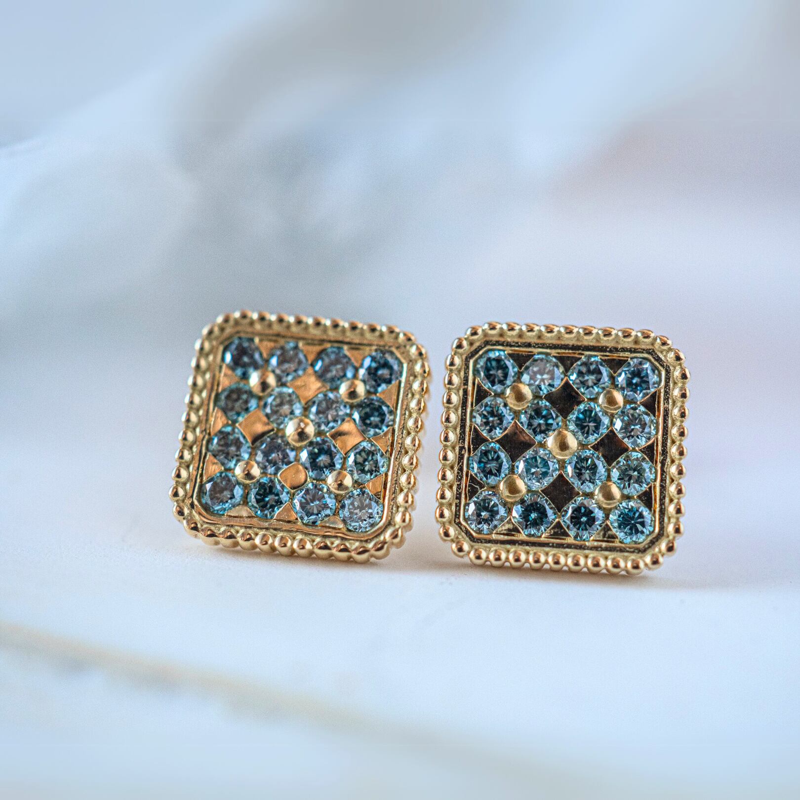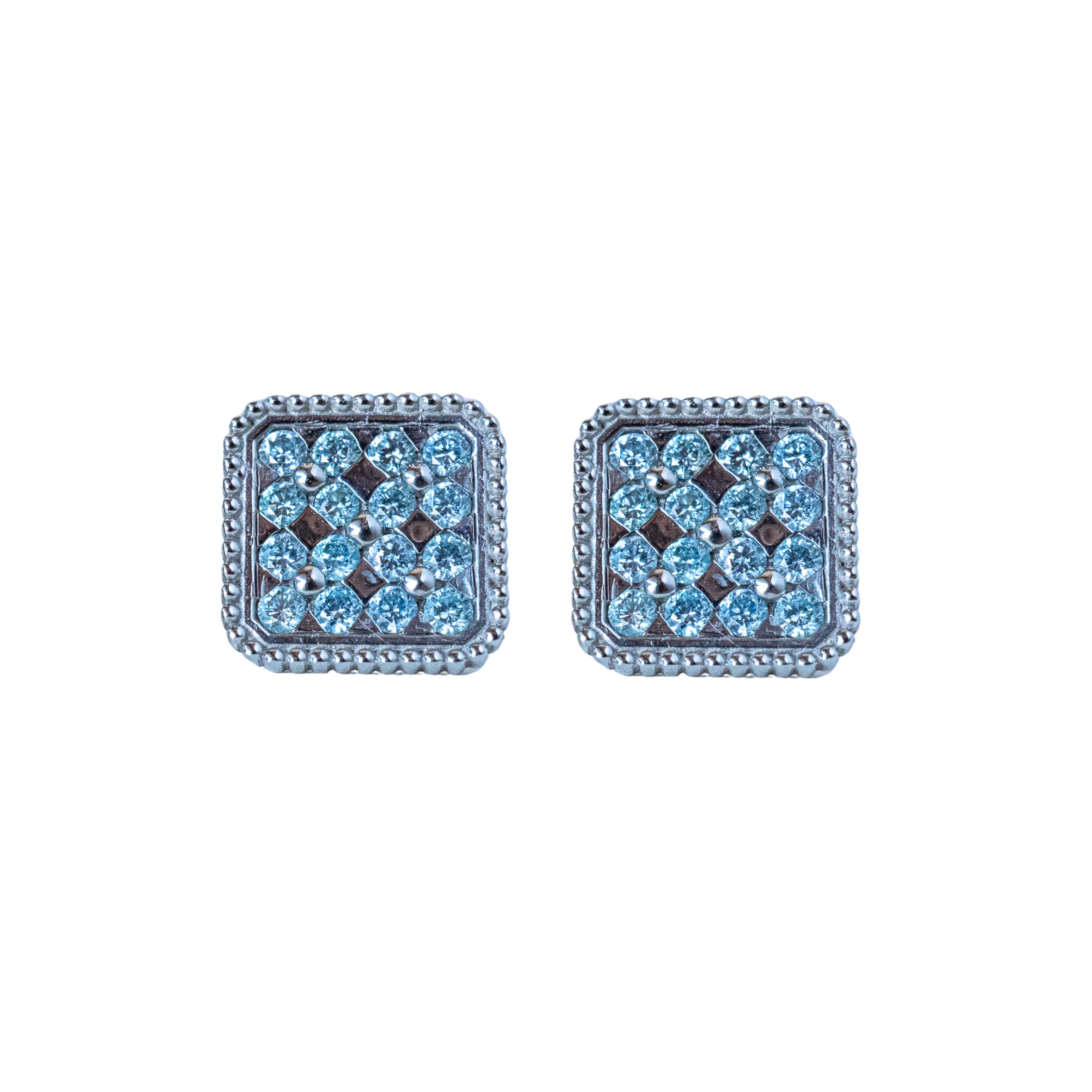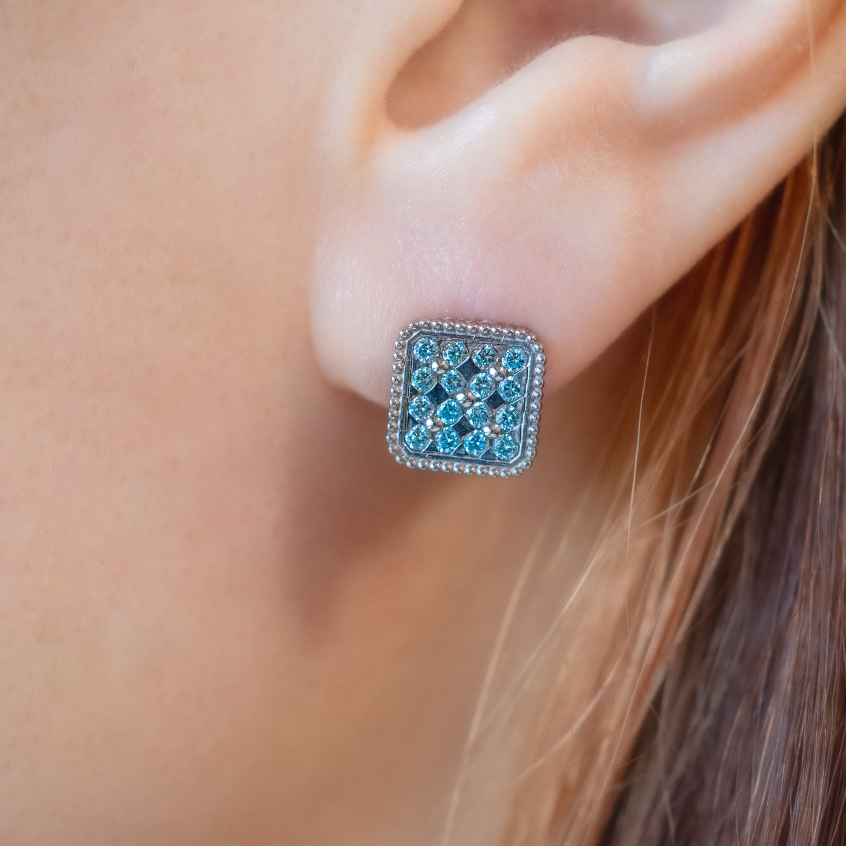 メレサイズのブルーダイヤモンドがきらびやかに敷き詰められた美しいラグジュアリーピアス。