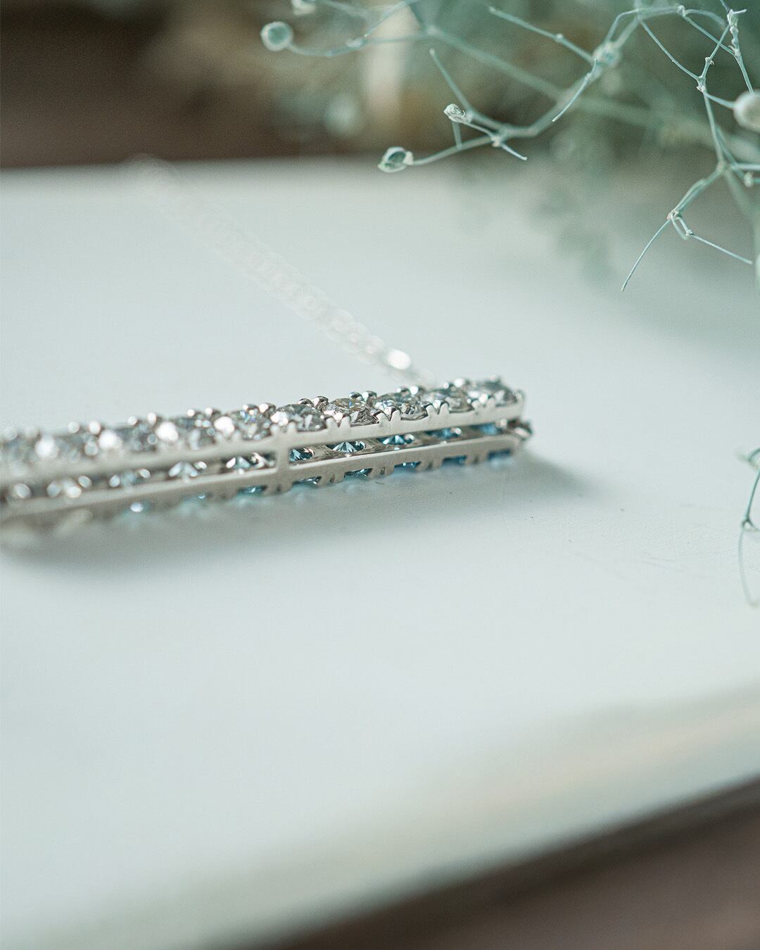 高純度Pt950の上質なプラチナと共に生み出される、顔まわりを明るく照らすラグジュアリーな輝き。