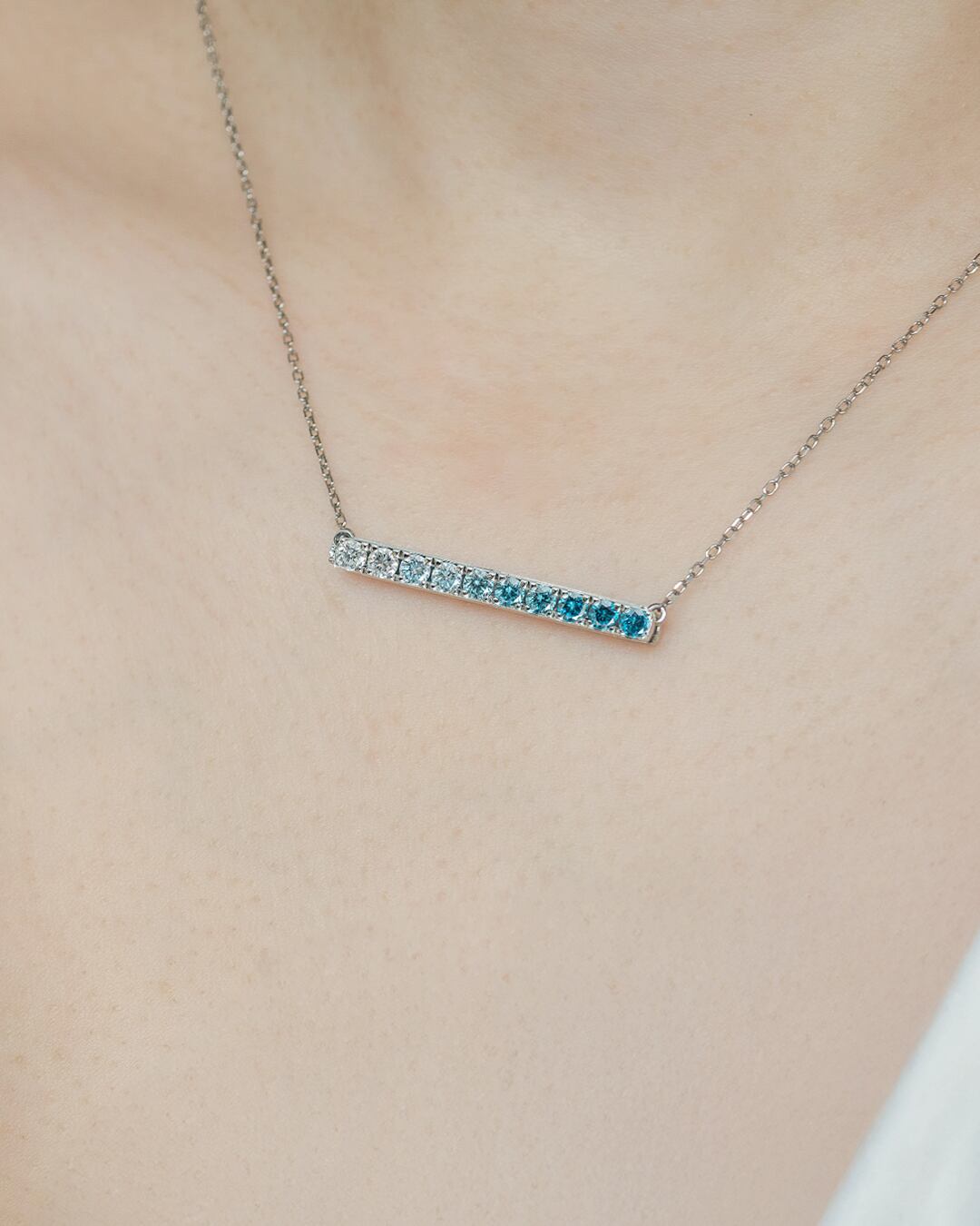 近年、トリートのブルーダイヤモンドはあまり生産されないため、このようにグラデーションブルーの色味を揃えることは大変難しいことです。