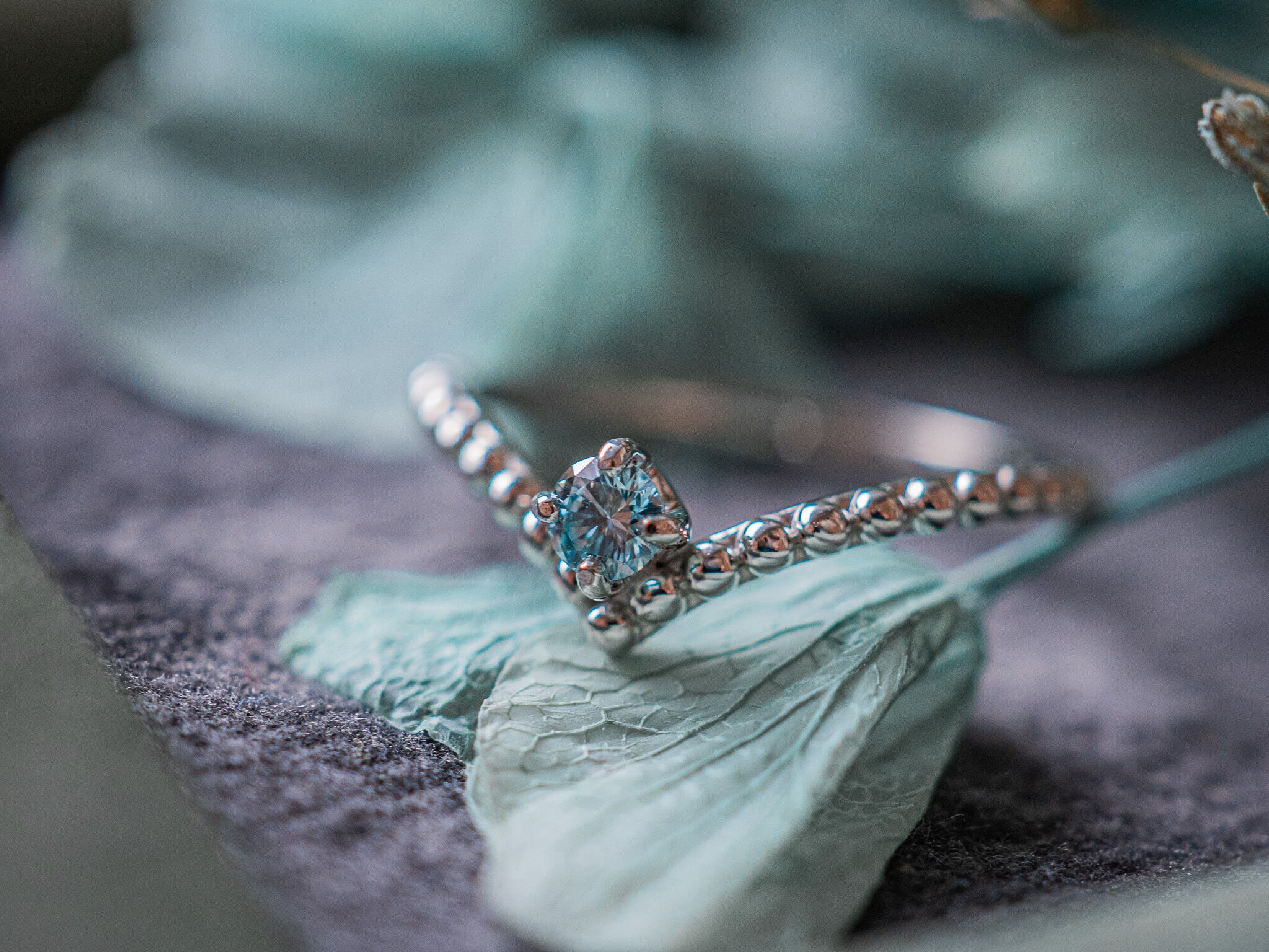 当店では、無色透明のダイヤモンドをブルーダイヤモンドへ変更できます。