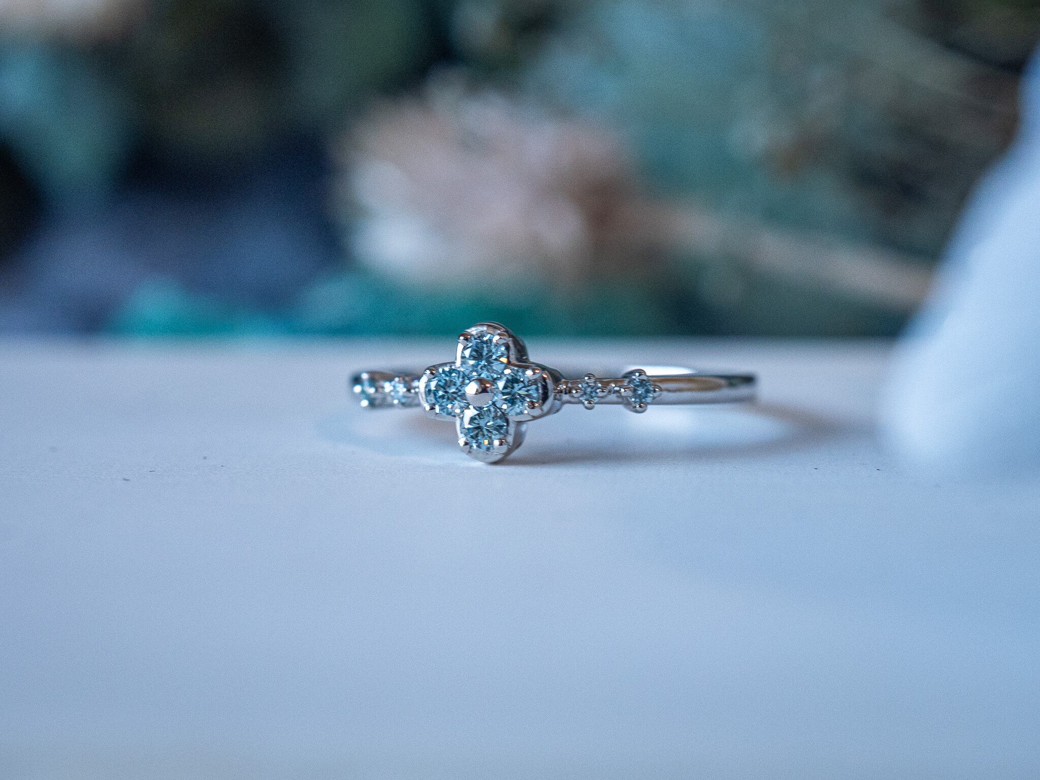 当店では、無色透明のダイヤモンドをブルーダイヤモンドへ変更できます。