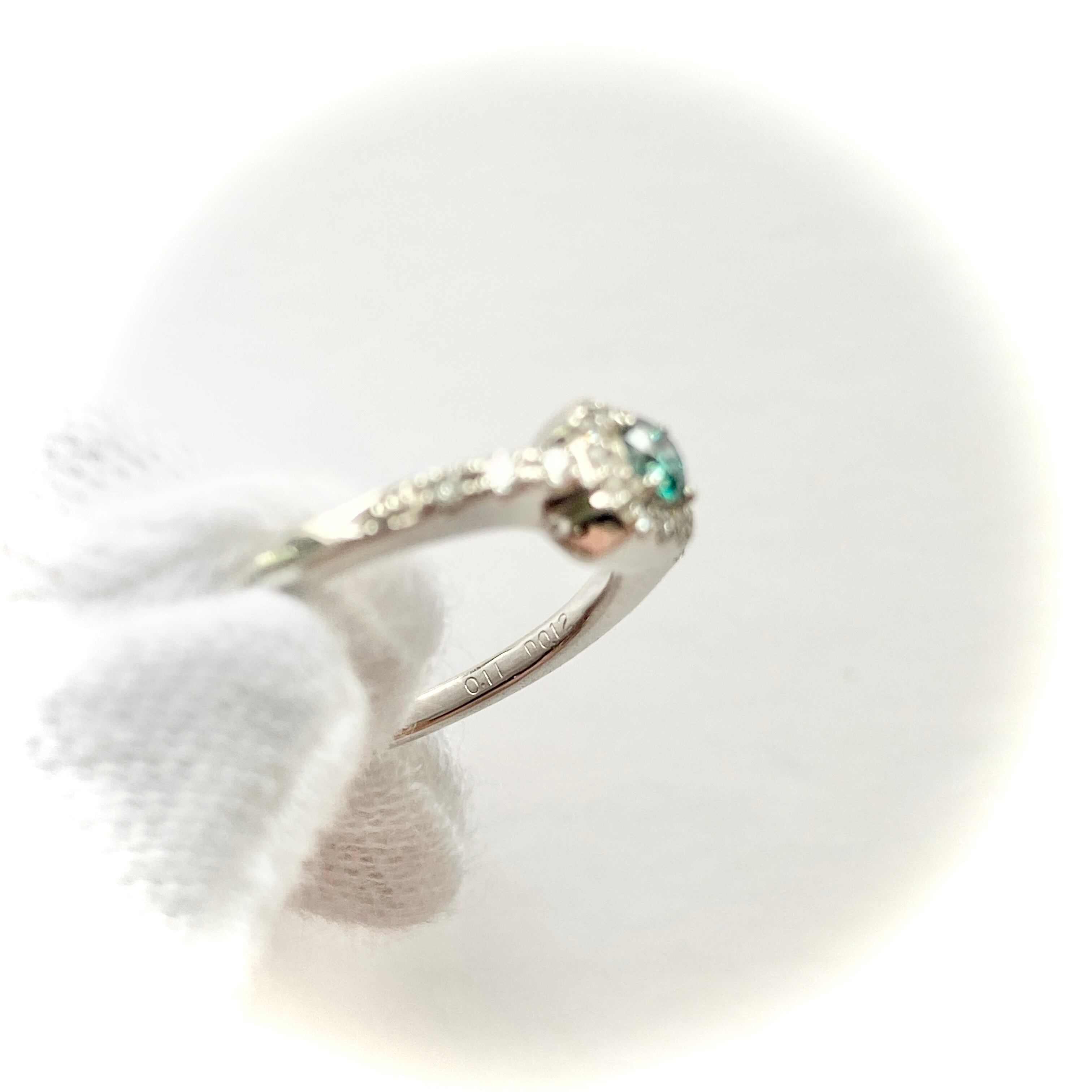 希少なブルーダイヤモンドを使用したPt950製のプラチナリングです。中央には0.11カラットのブルーダイヤモンドが輝き、サイドには0.12カラットのダイヤモンドが美しく配置されています。